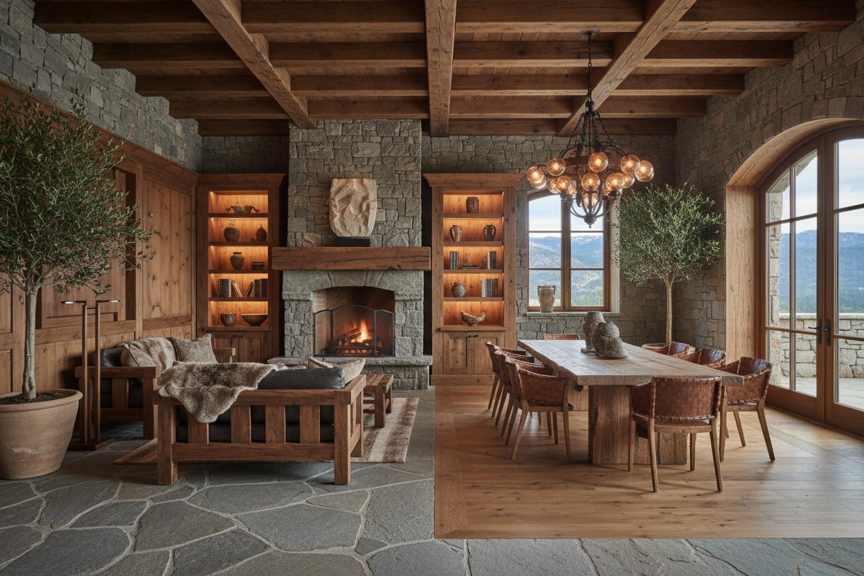 - Premium stone and wood interior finishes
